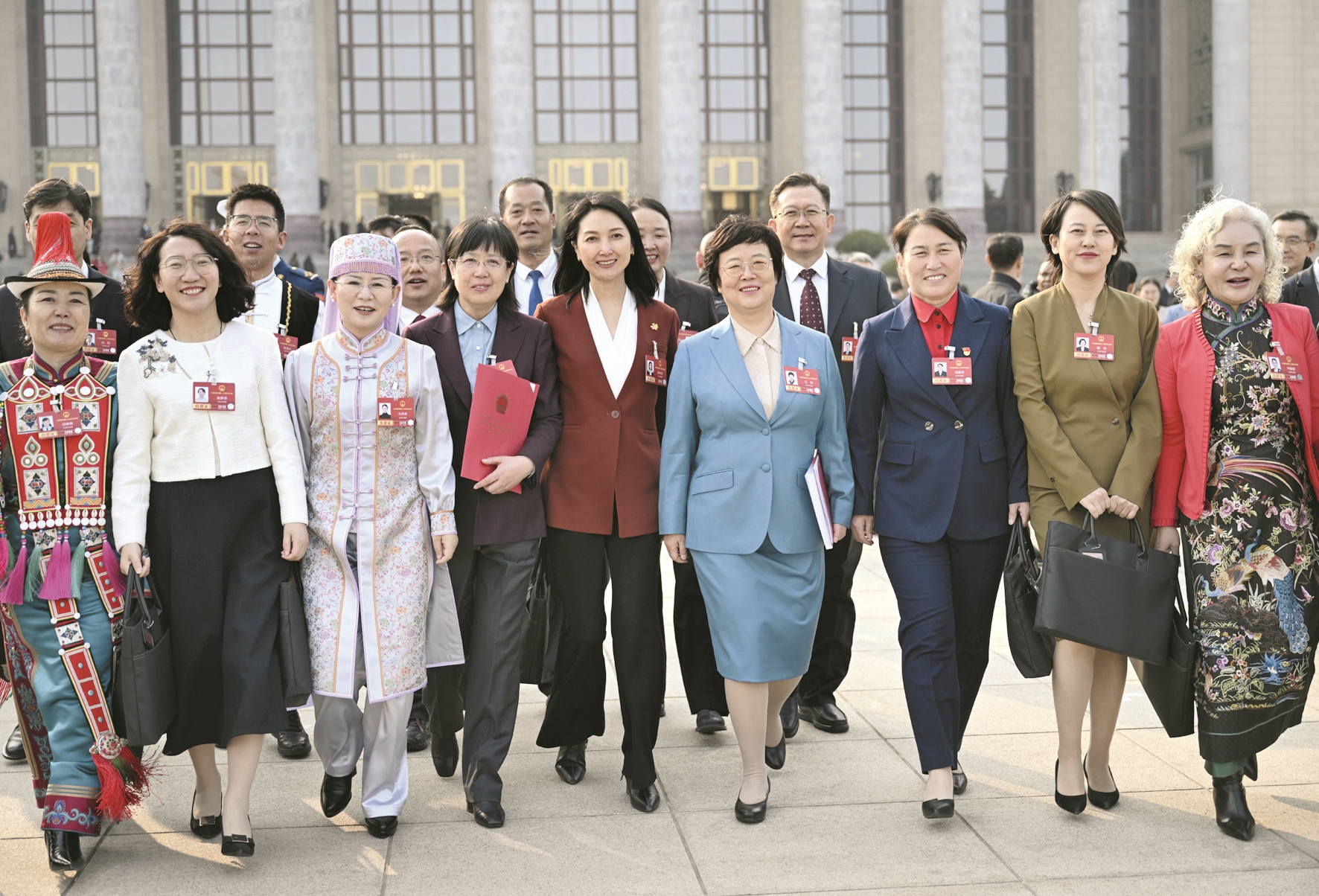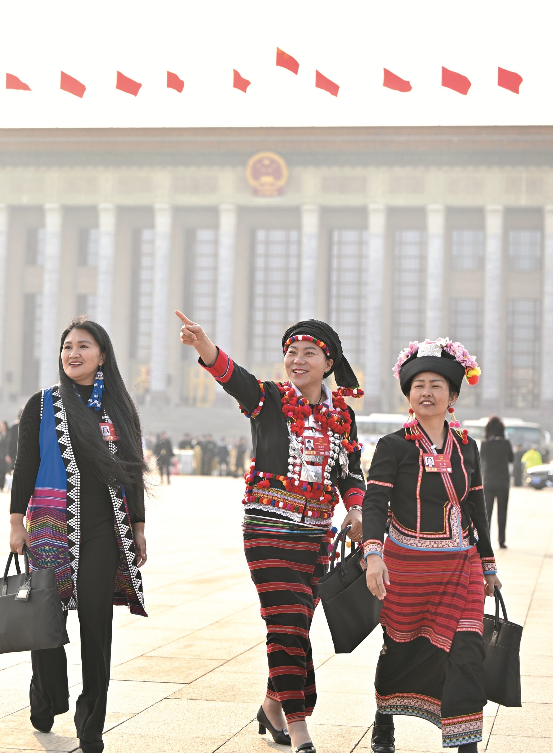 ↑→3月12日,第十四届全国人民代表大会第四次会议在北京人民大会堂举行闭幕会。这是闭幕会后,代表们走出人民大会堂。 (新华社发)