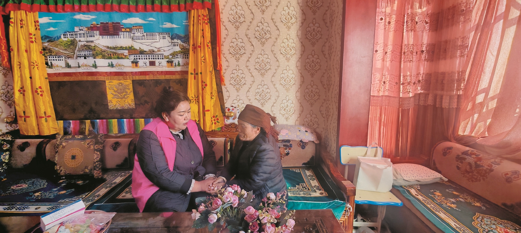 三月的拉萨阳光和煦,迎着晨光迈着坚定的步伐,米玛卓嘎又忙碌地穿梭在社区与居民群众家中。面对群众,她和蔼可亲、做事总是亲力亲为;面对同事,她关心呵护、安排工作细致到位,在居民和同事的眼里,她是身边值得信赖的贴心人,无论是大事小情,她们总是习惯第一时间找米玛卓嘎倾诉并寻求帮助,而米玛卓嘎总是耐心倾听并为大家及时排忧解难。“我们都非常感激米玛卓嘎主任,平日里,无论是社区的老人还是孩子,她都一视同仁地交心对待,群众有什么需要帮忙的,她都亲力亲为给予关心帮助,衷心感谢她。”城关区蔡公堂街道恩惠苑社区居民次旦拉姆说。