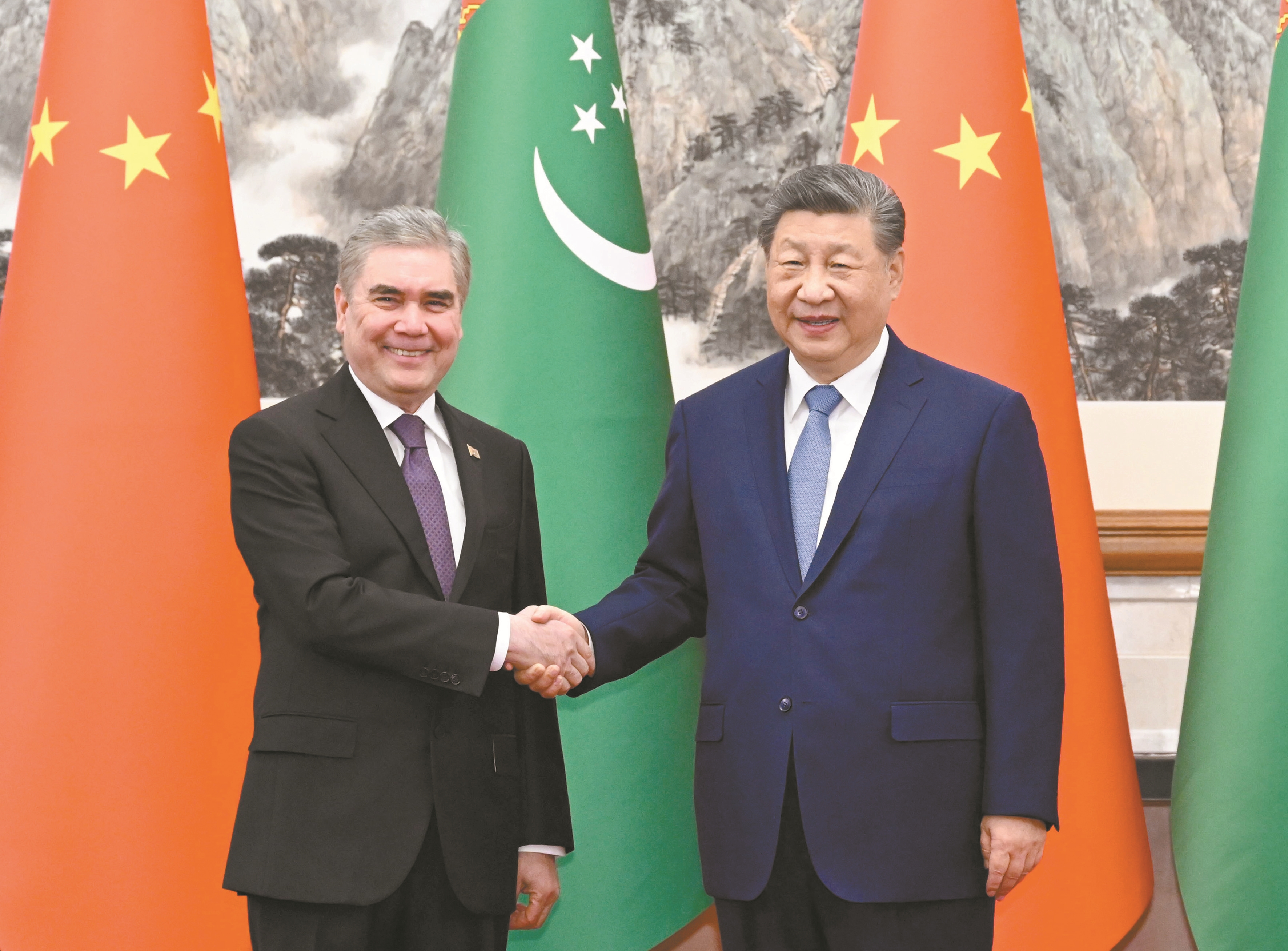 习近平指出,前不久中国全国两会成功召开,审查批准了“十五五”规划纲要。规划纲要的实施将为中国基本实现社会主义现代化奠定坚实基础,也将惠及世界各国。土库曼斯坦独立35年来,走出一条独立自主、符合自身国情的发展道路。马年伊始,中方愿同土方共商合作大计,共享发展机遇,推动中土命运共同体建设不断走深走实。
