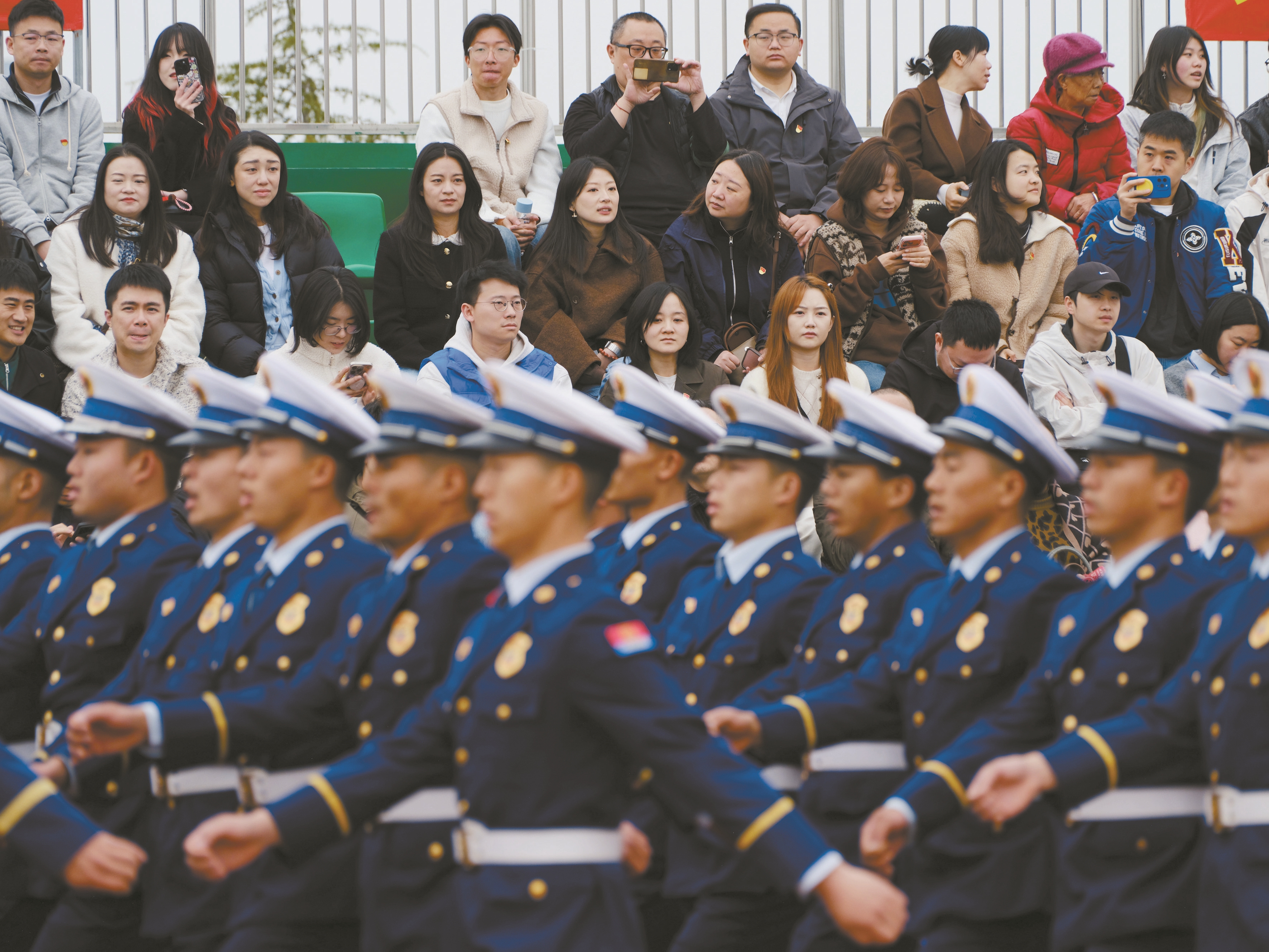 ▲图为3月18日,新入职消防员在列队训练。