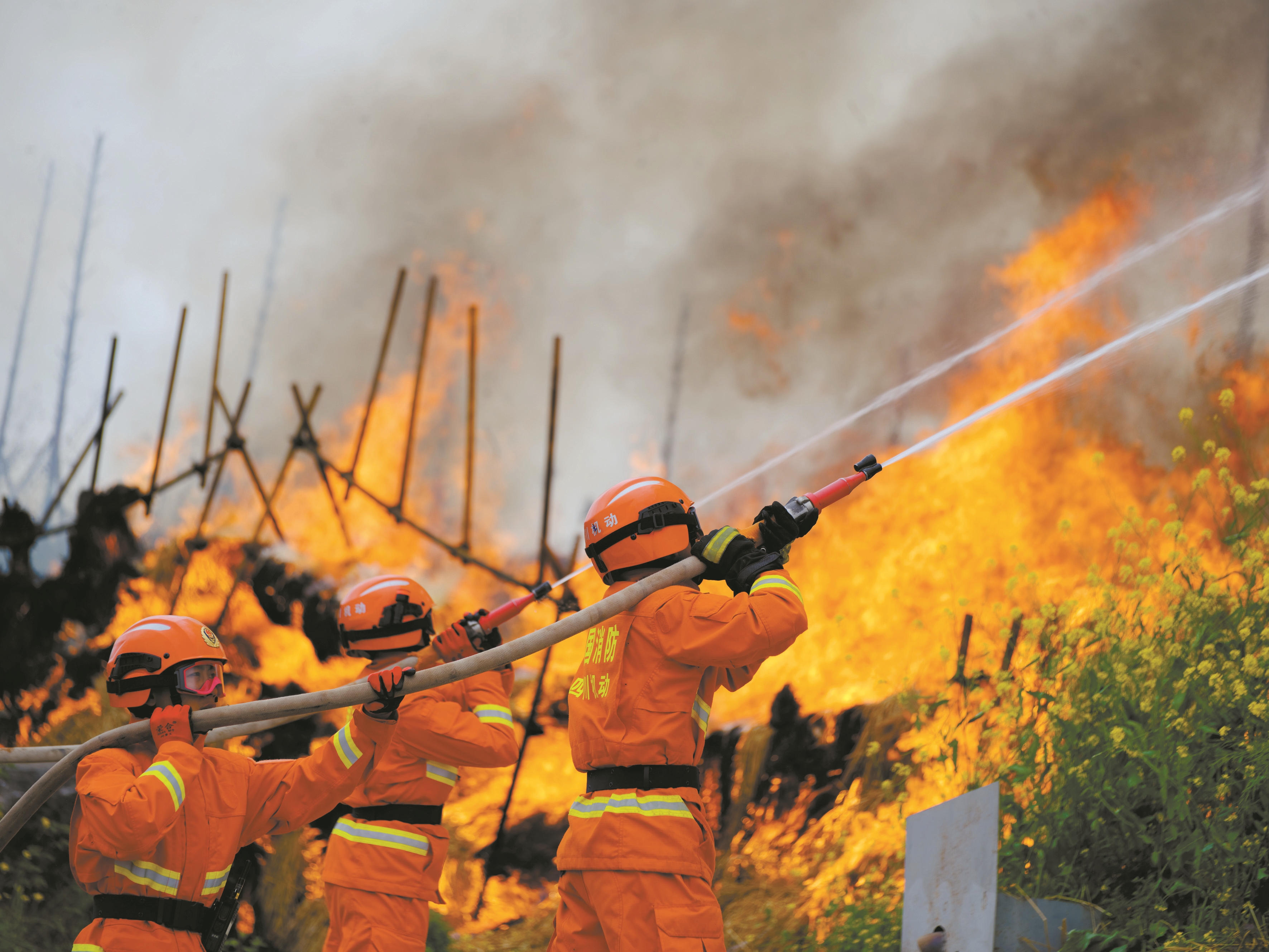 ?图为3月18日,新入职消防员进行灭火行动训练。