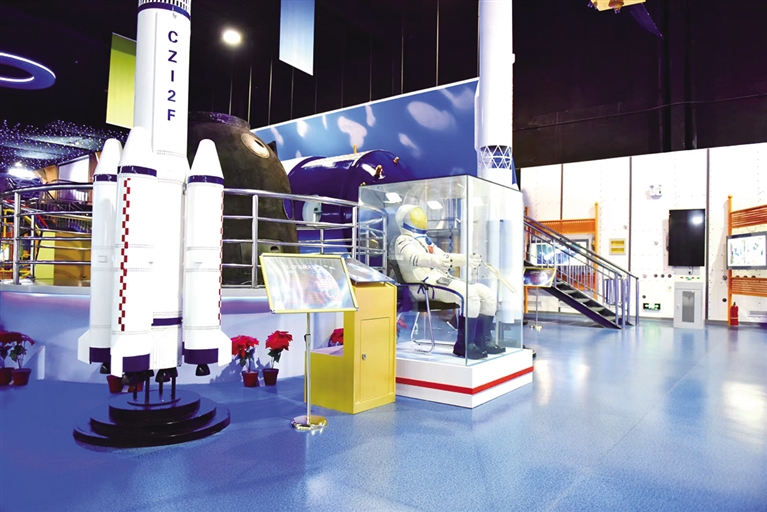 走进该校园,处处可见航天元素。教学楼前是腾飞的火箭模型,校园里张贴着航天科普文章,楼道里挂着神舟系列飞船的图片,学生们可以在航天科技教室观看相关视频,还能手工制作太空模型。