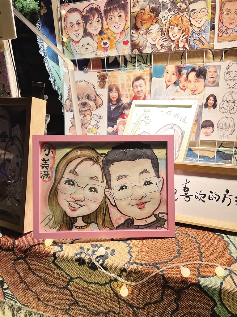 梁豆豆告诉记者,她的手绘肖像漫画像按色彩的不同,价位在29元到80元不等,价格亲民、实在,老百姓消费得起,又能偶尔一乐。