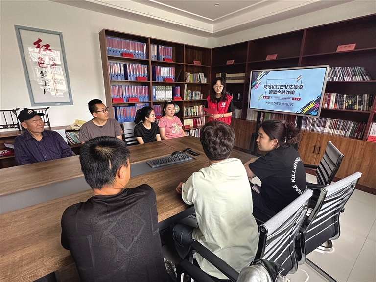 近日,回民区光明路街道所属多个社区新时代文明实践站开展了防诈骗宣传活动,进一步增强辖区居民的反诈防诈意识,有效预防和遏制电信诈骗案件的发生,帮助群众捂好钱袋子,护好幸福家。