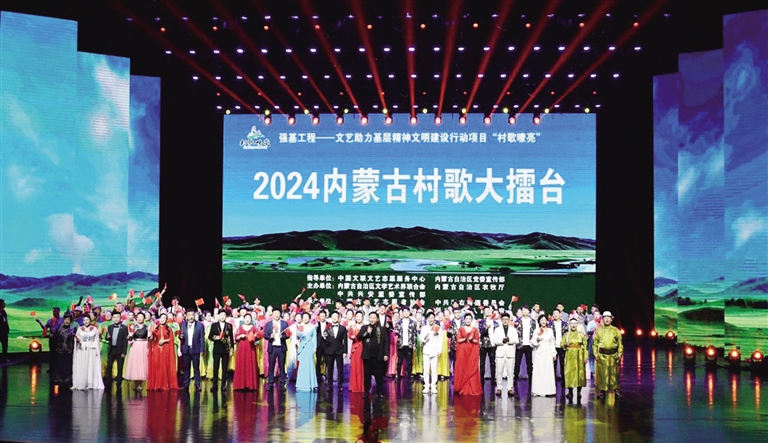 近日,由中国文联文艺志愿服务中心、内蒙古自治区党委宣传部指导,内蒙古自治区文学艺术界联合会、中共兴安盟委宣传部主办的“强基工程”——文艺助力基层精神文明建设行动项目“村歌嘹亮”2024内蒙古村歌大擂台,在兴安盟文化中心燃情开唱。这既是一场集结了内蒙古12个盟市20支村歌代表队,同题、同台攻擂的盛大赛事,也是一场通过村歌载体,持续推进乡村精神文明建设成果的集中展演。