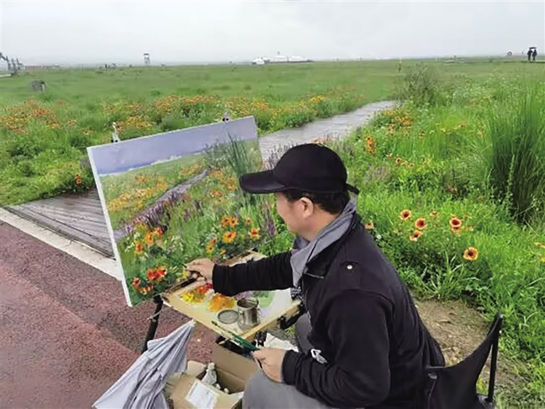 艺术家先后赴和林格尔县陈梨窑水库、呼和浩特市敕勒川草原,开展为期3天的采风写生创作活动,大家感受草原美景,品味北疆人文历史,并用画笔描绘青城的壮丽之美。