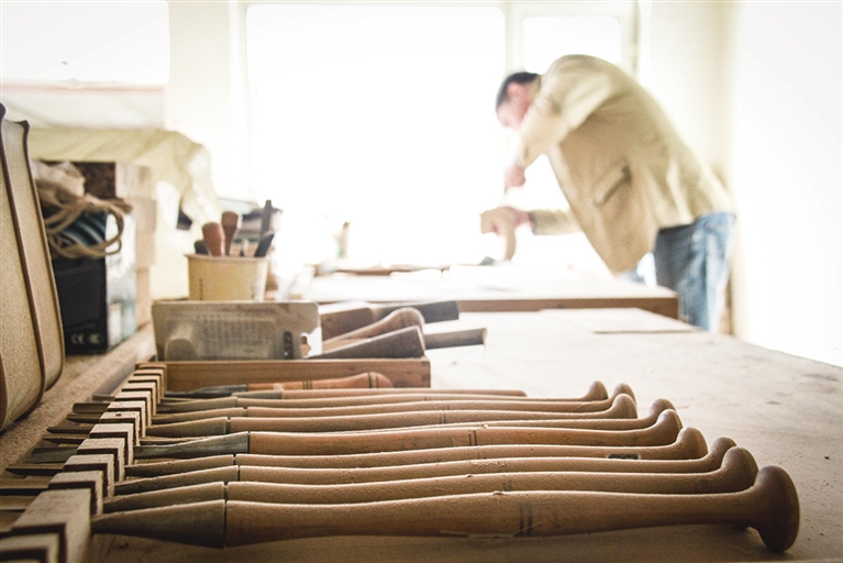 雕刻室内,不同大小型号的工具摆放整齐