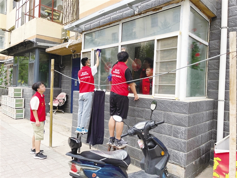 本报讯(记者 阿柔娜)近日,新城区海拉尔路街道内工大社区新时代文明实践站组织内蒙古工业大学的大学生志愿者到高龄老人家中开展了话家常、清扫卫生活动。