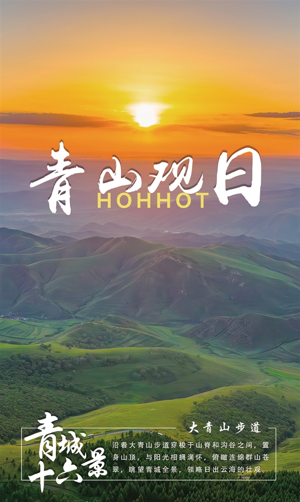 大青山步道位于大青山国家级自然保护区腹地,在呼和浩特市新城区大青山小井沟内。大青山步道线路分为两个环形,穿梭于山脊、沟谷以及森林之间,融合了观赏自然山水、运动健身、休闲娱乐为一体,是一个风景如画的景点。这就是青城十六景中的第十六景“青山观日”。