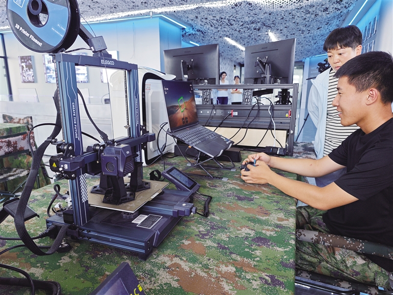 在位于赛罕区的北斗应用产业园内,天疆防务(内蒙古)空间技术有限公司(简称天疆防务)的员工正在通过3D打印技术快速打印无人机反击设备的部件模型。