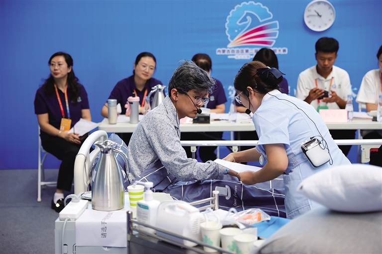 本届大赛以“技兴北疆 能创未来”为主题,为期3天,共设立56个竞赛项目,全区1398名优秀技能选手参赛,是内蒙古迄今为止举办的规模最大、人数最多的综合性职业技能赛事。本届大赛竞赛项目增加了人工智能训练、无人机装调检修、全媒体运营、健康照护等9个数字技术技能类和社会服务类的新职业赛项,参赛人数相比自治区第一届职业技能大赛增加457人,实现了全区参赛地区全覆盖。图为比赛现场。