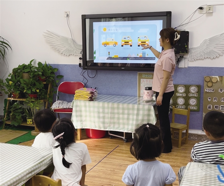 据新城区满族幼儿园保教主任岳俊歆介绍,根据幼儿不同年龄阶段特点,幼儿园开展了内容丰富、形式多样的集中教育教学活动。“对于刚步入幼儿园的小班幼儿,开学第一课以防走失为主题,帮助他们了解新的环境,树立规则意识,避免离开老师视线,以便更好地适应和融入集体;中班的孩子主要以安全教育为主,包括食品安全、交通安全等,让他们在日常生活中能够明辨危险、远离危险,学会保护自己;大班主要围绕铸牢中华民族共同体意识展开,教孩子们了解国旗的相关知识,从小培育他们爱党爱国爱人民、中华民族一家亲的观念。”