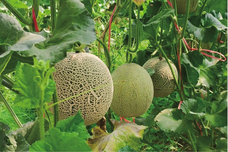 黄合少镇所在地区属于典型的温带大陆性气候。全年日照时长可达3000小时以上,日平均温差13℃-14℃。在这样独特的气候条件下,生长出来的西瓜、哈密瓜等瓜果清脆爽口、果肉肥厚、口感甘甜。据了解,自2018年果路种养殖农民专业合作社与赛音不浪村民委员会开始合作种植经营网纹瓜以来,已经建成2100余亩的生产基地,带动黄合少及周边村镇1000余户农民就业增收,人均年增收8000元以上。