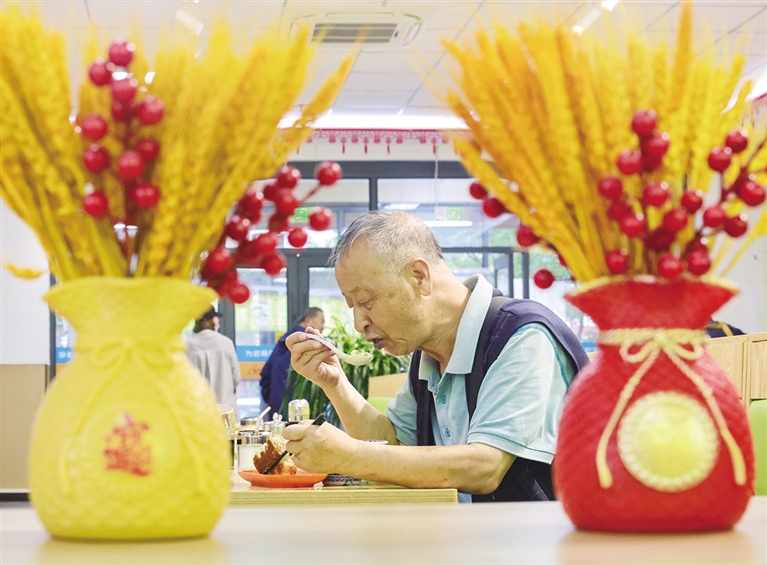 老人们在建华北街社区为老餐厅用餐