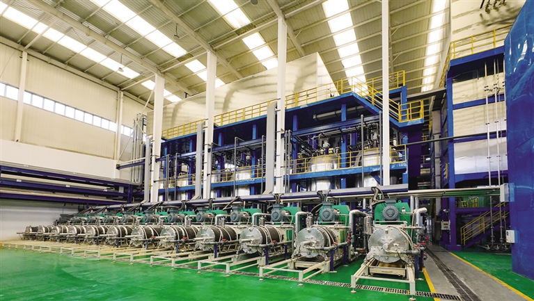“我们做磷酸铁锂的原材料是碳酸锂和磷酸铁,再加上一些辅料像葡萄糖等,经过研磨之后达到纳米级,然后进入这里的窑炉区进行烧制。”在该公司四期项目的生产车间,孟祥天向记者介绍了磷酸铁锂的生产工艺,物料从烧结工序输送过来之后,首先进入气流粉碎系统,粒度合格后再通过超声波振动筛,接着经电磁干粉除铁器除磁,最后通过自动包装得到磷酸铁锂成品。在窑炉区共有4条生产线,每一条生产线有83米长,“经过近三年的产品开发设计,目前我们自主研发的超细快速研磨技术、复合掺杂包覆技术、特殊形貌磷酸铁锂制备技术、超低磁性物控制技术已达到国内先进水平,并实现规模化应用。”孟祥天说。