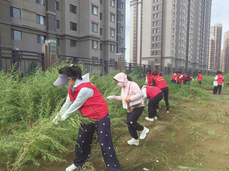 近日,新城区丁香北路街道人大工委积极组织部分人大代表、志愿者开展了“清除蒿草 守护健康”志愿服务活动,有效阻断了辖区蒿属类植物花粉成熟扩散,提高了城市清洁度。