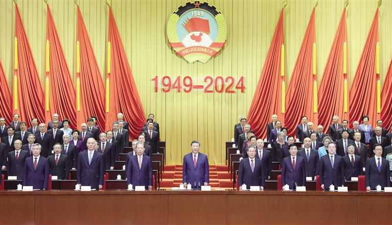 大会在雄壮的国歌声中开始。习近平发表了重要讲话。他指出,75年来的实践充分证明,人民政协是中国共产党把马克思列宁主义统一战线理论、政党理论、民主政治理论同中国具体实际相结合、同中华优秀传统文化相结合的伟大成果,是中国共产党领导各民主党派、无党派人士、人民团体和各族各界人士在政治制度上进行的伟大创造,具有深厚的文化基础、理论基础、实践基础,具有鲜明中国特色和显著政治优势,是科学、有效、管用的制度安排,在人类政治制度发展史上具有独特政治价值。