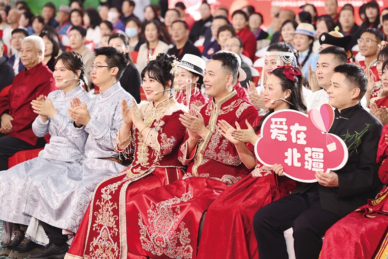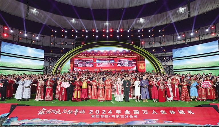9月22日,“家国同庆 见证幸福”2024年全国万人集体婚礼内蒙古分会场活动在敕勒川草原千人会议中心举行。来自内蒙古自治区12个盟市的300对新人携手步入礼堂,每一对新人的脸上都洋溢着难以言喻的喜悦。本次集体婚礼旨在大力倡导移风易俗、婚事新办简办,反对高额彩礼、大操大办,进一步倡导新型婚育文化,培育社会主义家庭文明新风尚。