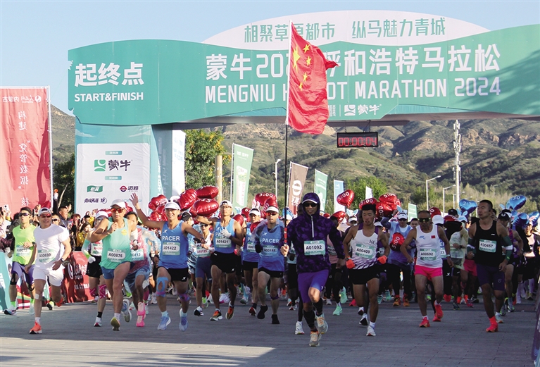 本报讯(记者 苗欣)9月22日,由市政府主办、市体育局承办,以“相聚草原都市 纵马魅力青城”为主题的蒙牛2024呼和浩特马拉松在内蒙古少数民族群众文化体育运动中心开跑,来自国内外的2.5万余名选手和马拉松运动爱好者共同感受青城魅力。