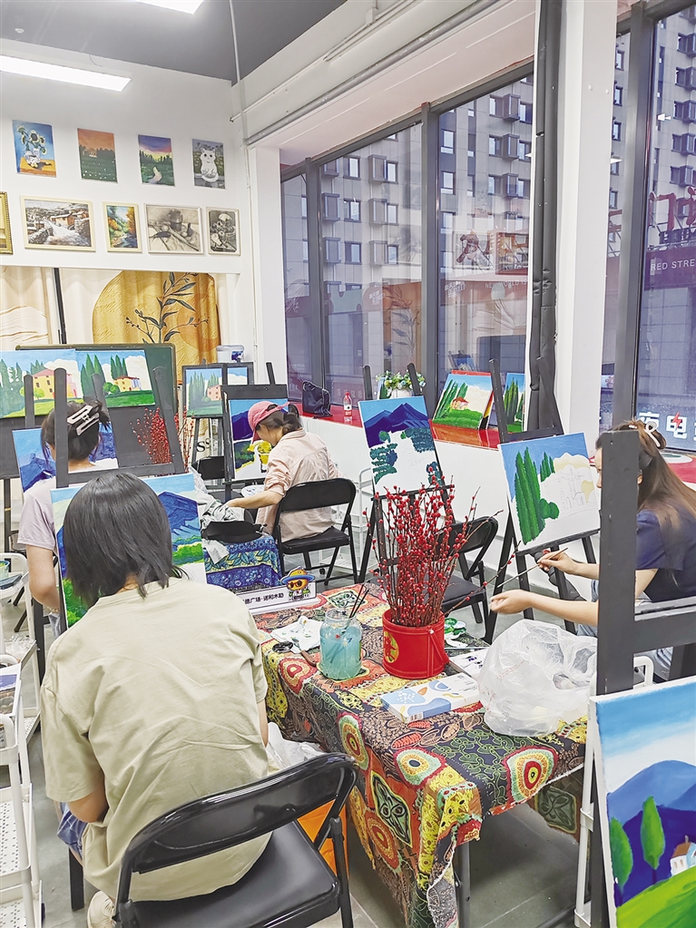 在摩尔城校区,学员们也正跟着老师的步伐认真学习尊巴舞,大家活力满满,伴随着动感的音乐,尽情释放压力,享受舞蹈带来的快乐与自信。“在家门口就能练舞、弹琴,还能结交很多朋友,太开心了!”学员小玉说。