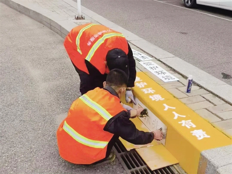 本报讯(记者 阿柔娜)近日,玉泉区环卫服务中心以五里营区域为试点,大力开展道路两侧雨水井喷绘提醒标识工作,旨在引导沿街商户规范排污行为,共同维护良好的城市环境。