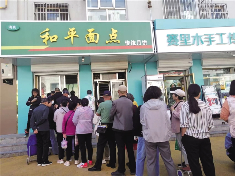 本报讯(记者 刘丽霞)近日,记者在呼和浩特市网红打卡点之一的宽巷子看到,各地游客汇聚于此,尽情享受宽巷子的各种美食,尤其是在传统美食烧麦、月饼、羊杂等商铺门口,游客排起了长队等待购买美食。