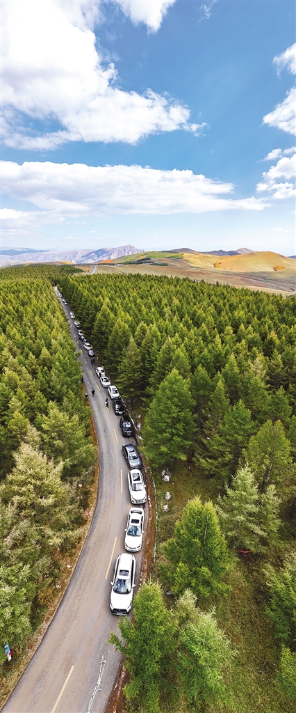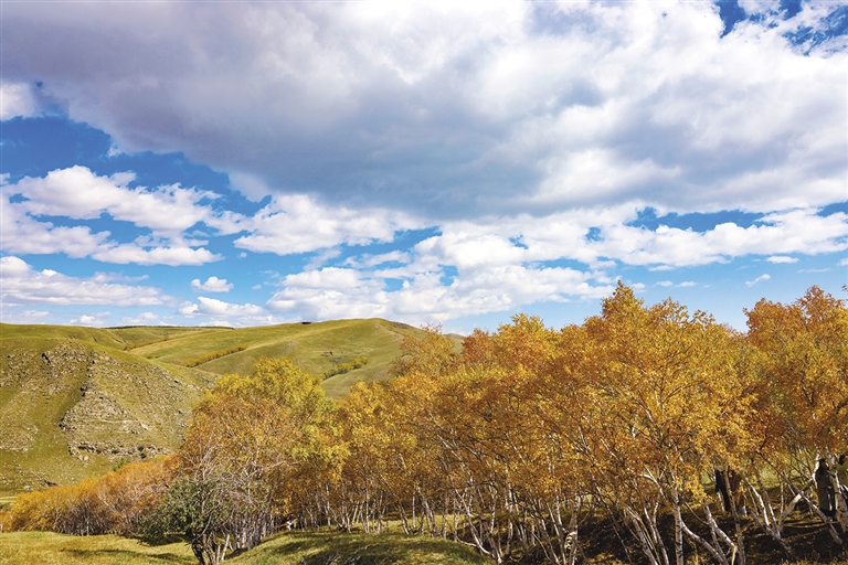 国庆假期,塞外青城秋意正浓,天高云淡。来到哈达门国家森林公园,登上山顶,看朵朵白云从头顶飘过,似乎伸手就能触到,茂密的桦树林吸引了无数游客打卡拍照,金黄的高山草甸一望无际,神秘的网红林叠翠流金……