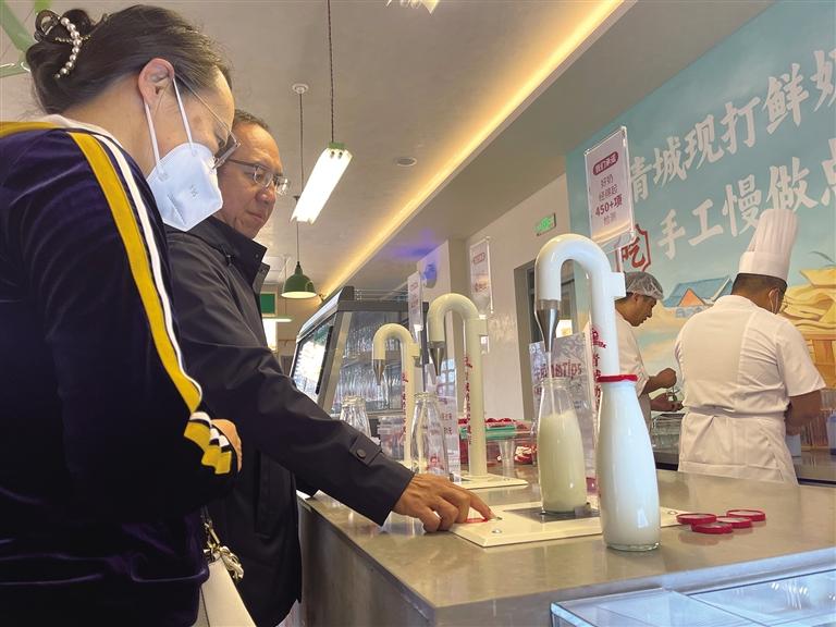 “今天我是带着我妈一起来这里买牛奶的,小时候我妈就给我打奶喝,如今这里的自助打奶方式一下子唤起了我儿时的记忆。” 张玉桃说。