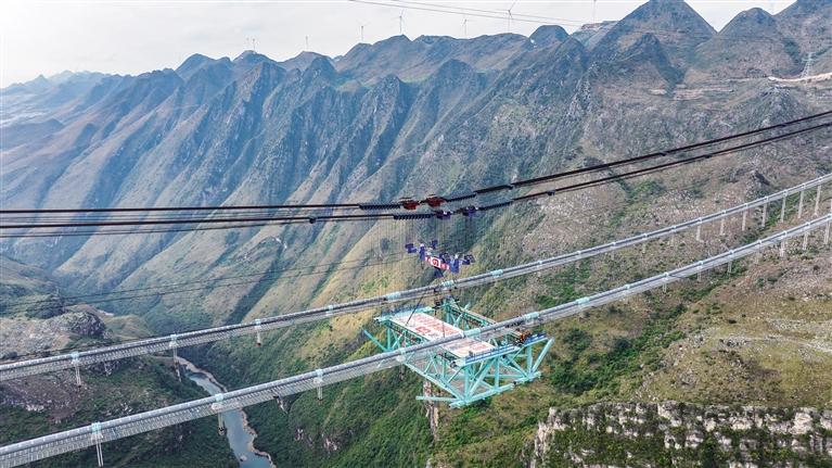 2022年开工建设的花江峡谷大桥,因跨越被誉为“地球裂缝”的花江大峡谷而得名,是贵州省六枝至安龙高速公路的控制性工程。全长2890米的大桥为钢桁梁悬索桥,桥面距水面垂直高度625米,建成后将成为新的世界第一高桥。