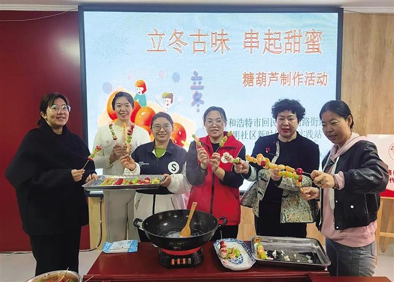近日,回民区光明路街道光明社区新时代文明实践站开展了冰糖葫芦制作活动,让辖区群众了解“立冬”的习俗,体验制作冰糖葫芦的乐趣。