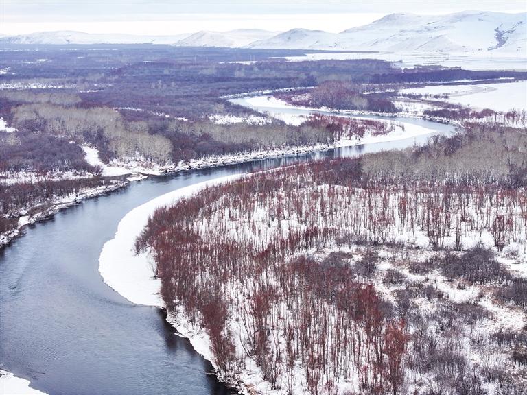 近日,位于内蒙古呼伦贝尔市的额尔古纳湿地迎来降雪。白雪覆盖下,河流蜿蜒流淌,景色如梦如幻。