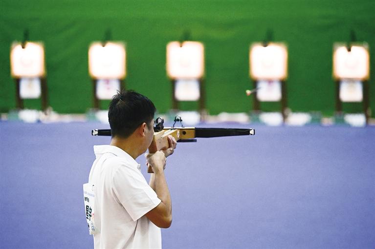 当日,第十二届全国少数民族传统体育运动会射弩项目民族标准弩混合团体决赛在海南省三亚市上海外国语大学三亚附属中学体育馆进行。