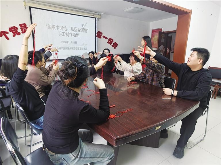 近日,光明路街道富丽社区新时代文明实践站组织开展了“编织中国结 弘扬爱国情”手工制作活动,进一步丰富居民的精神文化生活。