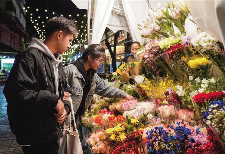 12月6日,游客在昆明市五华区景星街选购鲜花。