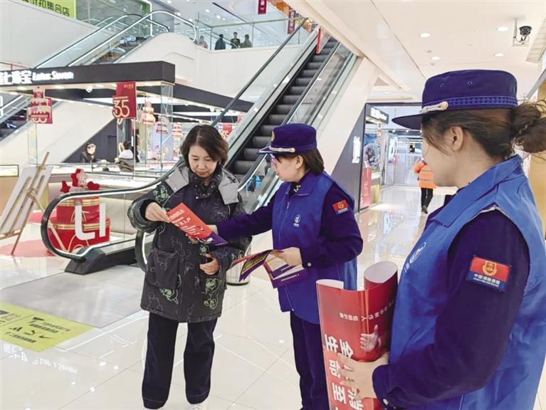 活动中,消防志愿者走进辖区重点单位七彩城大型综合体开展消防安全指导和宣传。宣传人员以商场为中心,向商户和顾客发放宣传单,旨在提高每位经营者及消费者的消防安全意识,达到会报警、会逃生、会灭火的能力要求。
