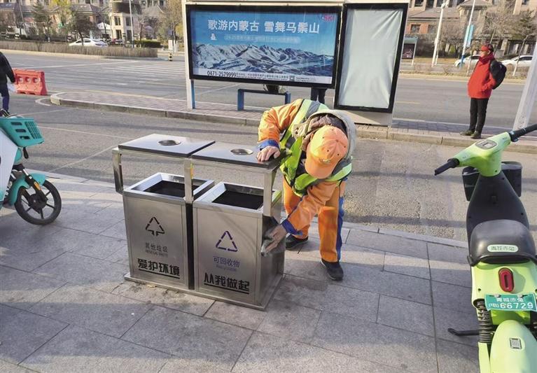 近日,北控城市服务(呼和浩特市回民区)有限公司组织人员对辖区隔离护栏、果皮箱、公交站牌、公共座椅、广告牌等设施开展保洁工作,确保城市家具整洁干净。