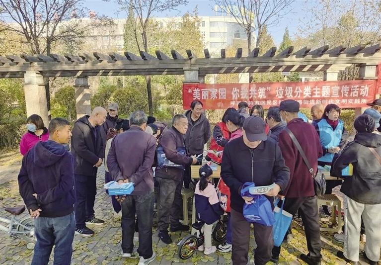 近日,回民区新华西路街道新时代文明实践所在光明游园开展以“美丽家园 你我共筑”为主题的垃圾分类宣传活动,通过普及垃圾分类知识引导居民养成良好分类习惯,共建绿色家园。