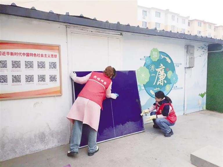 近日,新城区曙光街社区组织志愿者开展大扫除,引导居民不乱扔、乱堆、乱画,共同爱护家园。 ■本报记者 刘沙沙 摄
