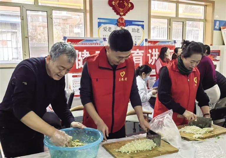 日前,玉泉区苁蓉社区新时代文明实践站外寒风凛冽,站内却暖意融融。玉泉区苁蓉社区新时代文明实践站开展了“加强邻聚力 幸福暖食光”志愿服务活动,和面、拌馅、备调料……社区居民欢聚一堂,共享人间烟火。