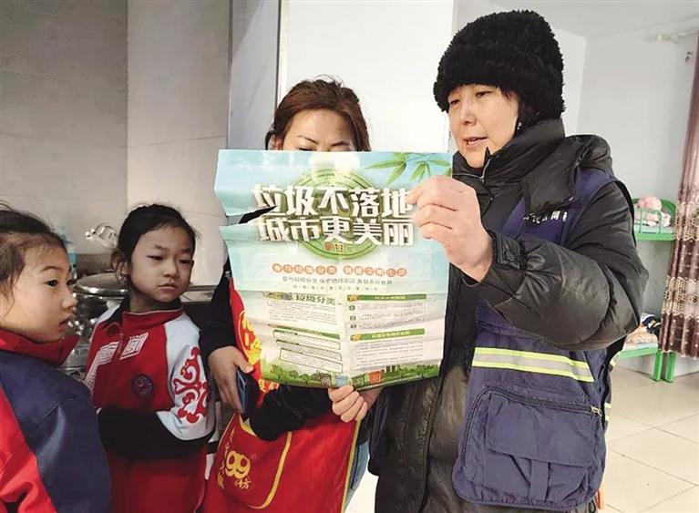 近日,回民区环河街街道工人南村社区工作者走进辖区小饭桌开展垃圾分类宣传活动,向小饭桌的工作人员发放垃圾分类宣传资料,重点宣传了不同垃圾的分类标准和处理方式,让她们在日常经营中准确引导学生进行垃圾分类。