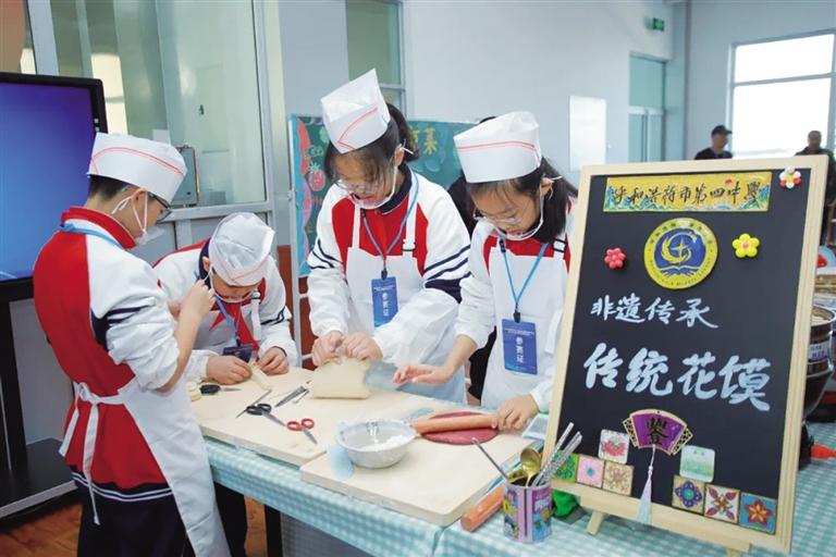 记者了解到,该校按照各年级学生的特点,还开展了不同主题的劳动教育活动,既有生活中简单的家务劳动,又有生活技能方面的内容。在课程具体实施中,形成了独具特色的“劳育+”课程群,包括“劳育+厨艺”“劳育+非遗”“劳育+耕读”“劳育+节气”“劳育+节日”“劳育+艺术”等。