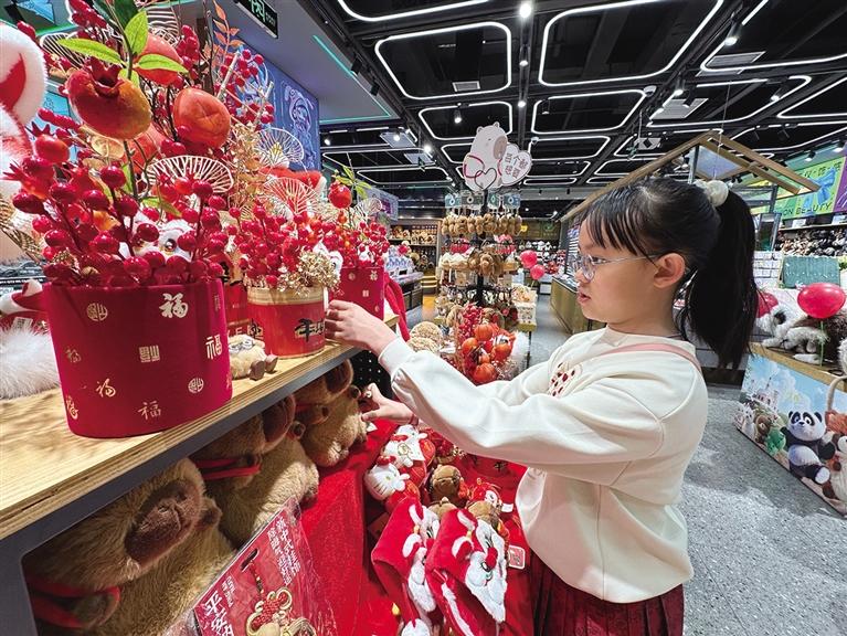 1月1日,不少市民前往各大商圈,通过“买买买”欢度佳节。全市重点商圈掀起消费热潮,迎来2025年“开门红”。图为小朋友在商场挑选新年礼物。