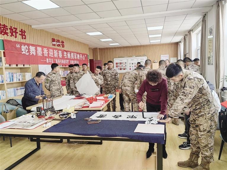 近日,赛罕区退役军人事务局、区双拥办联合内蒙古通俗文艺研究会开展了“蛇舞墨香迎新春 书画拥军映丹心”新春书画进军营双拥主题活动。