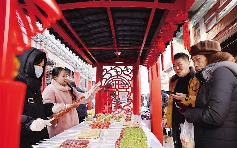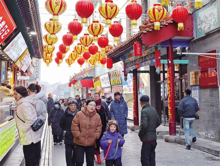 当天是正月初二,塞上老街旅游休闲街区迎来大量游客,人们游览观光、品尝美食,感受春节假期的惬意时光。
