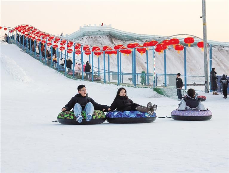 除了欣赏冰灯,丰富多彩的冰雪项目也很受游客欢迎。驾驶着雪地摩托风驰电掣,感受着速度与激情;坐着雪橇从高高的雪坡上一滑而下,尖叫声和欢笑声回荡在整个雪场。