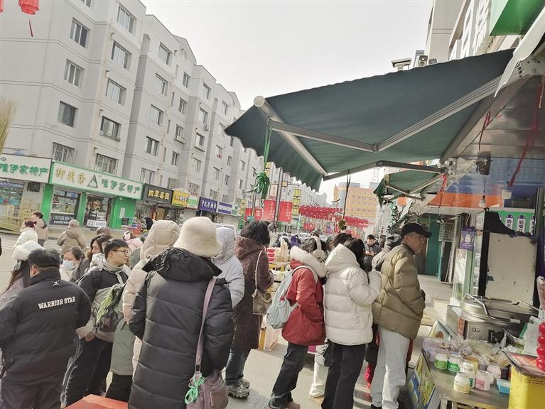 “我从湖南长沙来呼和浩特旅游,今天专门来宽巷子感受这里的地方特色美食,尤其是想尝尝这里诱人的美食,听说呼和浩特的酸奶饼、焙子、羊杂、烧卖、牛羊肉都非常好吃,我对这些美食充满了期待。”春节假期,很多来呼和浩特旅游过年的游客都会慕名到网红打卡地宽巷子,他们在美食摊前排起长队耐心等待美食新鲜出炉。