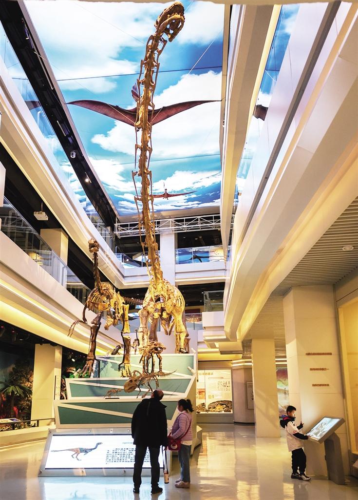 恐龙的故乡展厅无疑是最受孩子们欢迎的地方。一进展厅,巨大的恐龙骨架便映入眼帘,仿佛将人们带入了恐龙称霸地球的时代。孩子们兴奋地与这些远古巨兽合影留念,还认真地听讲解员讲述恐龙的种类、生活习性等知识。