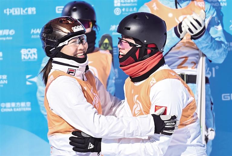 在亚布力,刚夺得本届亚冬会自由式滑雪空中技巧男子个人冠军的20岁小将李心鹏,携手34岁的北京冬奥会冠军徐梦桃和齐广璞,轻松摘得空中技巧混合团体金牌。徐梦桃说:“混合团体赛代表着一个队伍的整体实力,它同时展现了一个项目当中男女运动员共同的水平,很荣幸我们能拿到冠军。”
