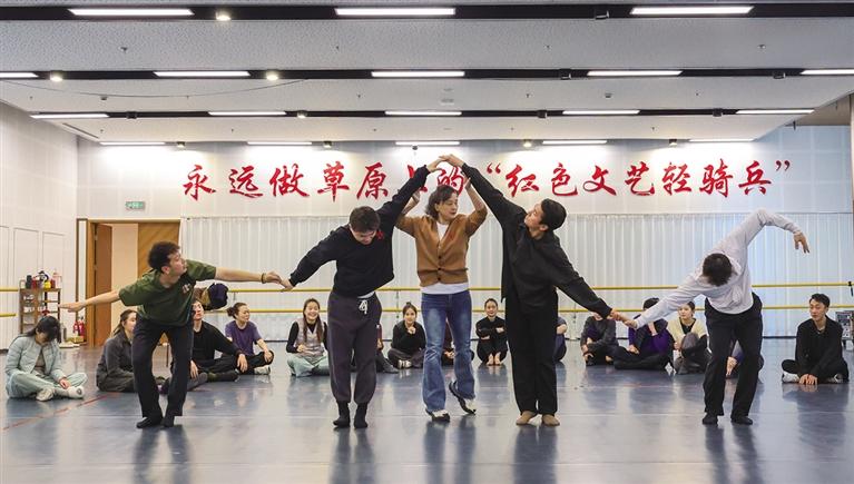2月17日,中央戏剧学院歌剧系副教授白硕指导乌兰牧骑队员练习。据了解,从2月14日开始,自治区直属乌兰牧骑2025年度戏剧表演培训班第二批培训正式启动,21名乌兰牧骑队员参加,课程为期10天。