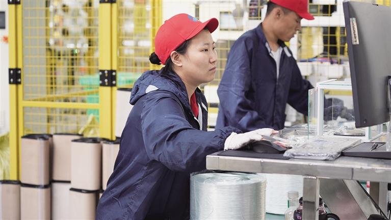 日前,在内蒙古天皓玻纤公司生产车间内,工人们熟练地操作着设备,每个动作都透着专业与干练。先进的自动化设备高效运转,精准执行每一道工序,机械手臂灵活挥舞,搬运、组装一气呵成。